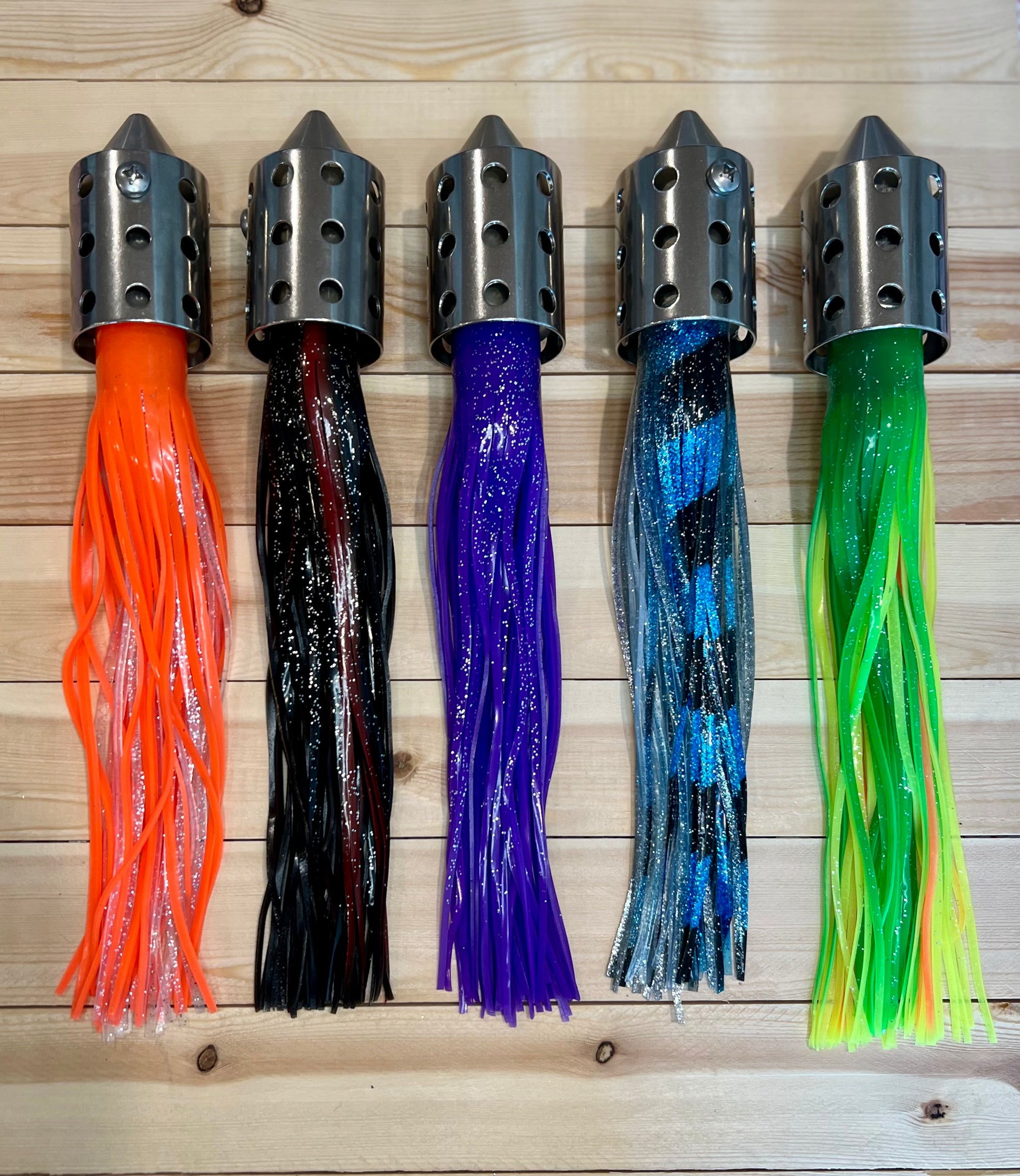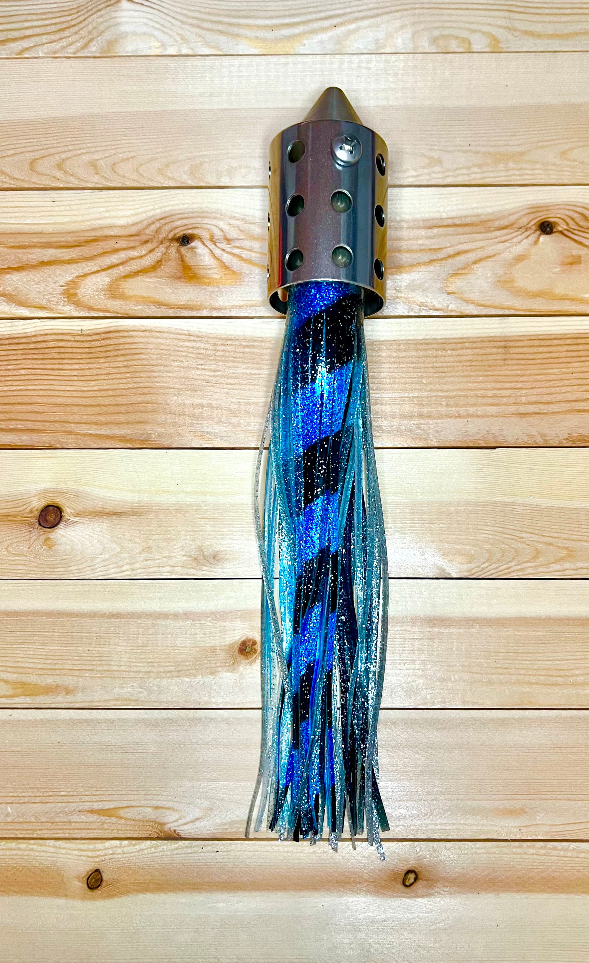 The Wahoochie is a 32oz Wahoo killing machine!Cowbell type lure that measures 12” overall with an outside collar that’s designed to throw tons of bubbles and smoke trails! The collar shakes and rattles and drives Wahoo crazy!